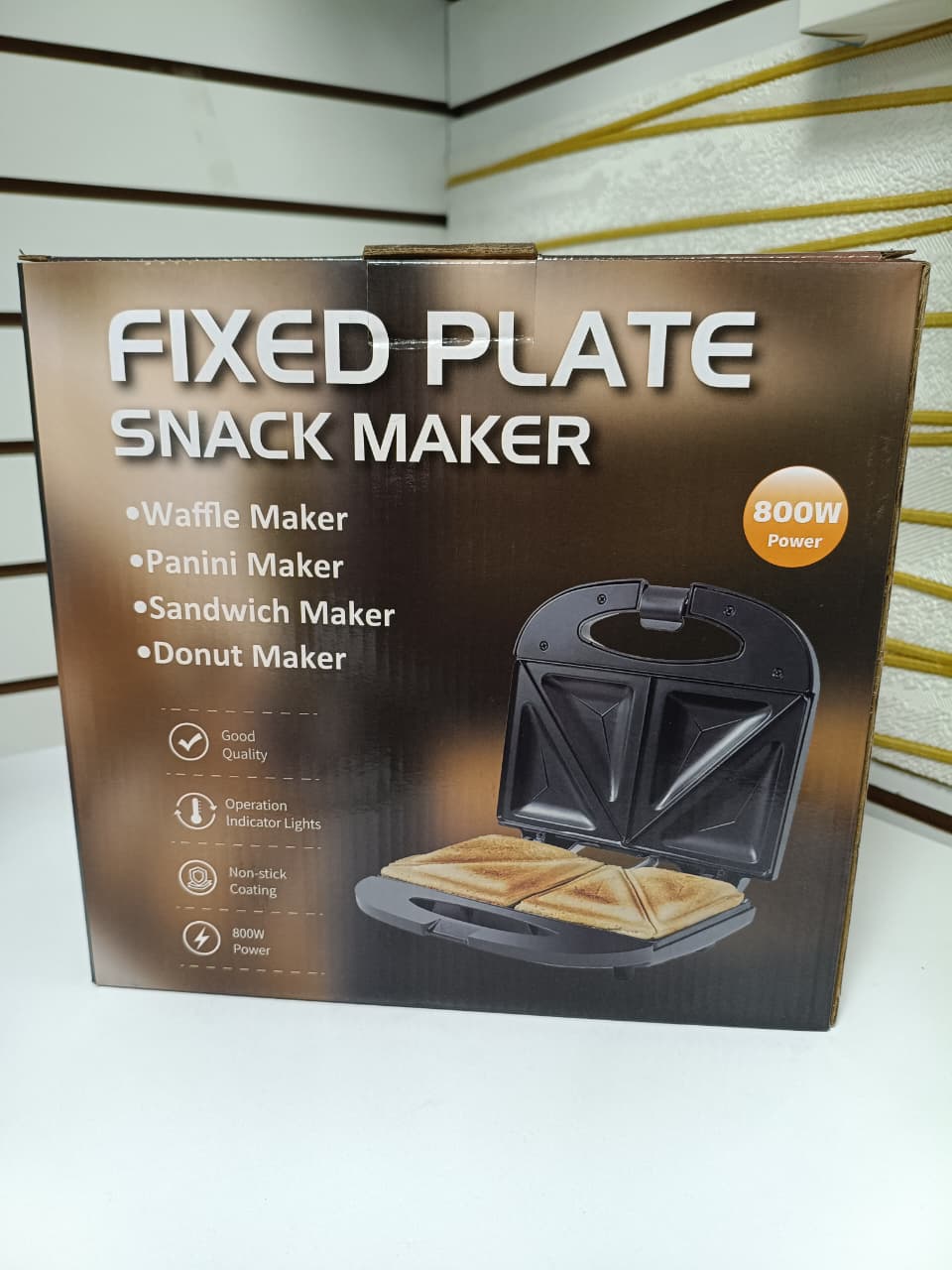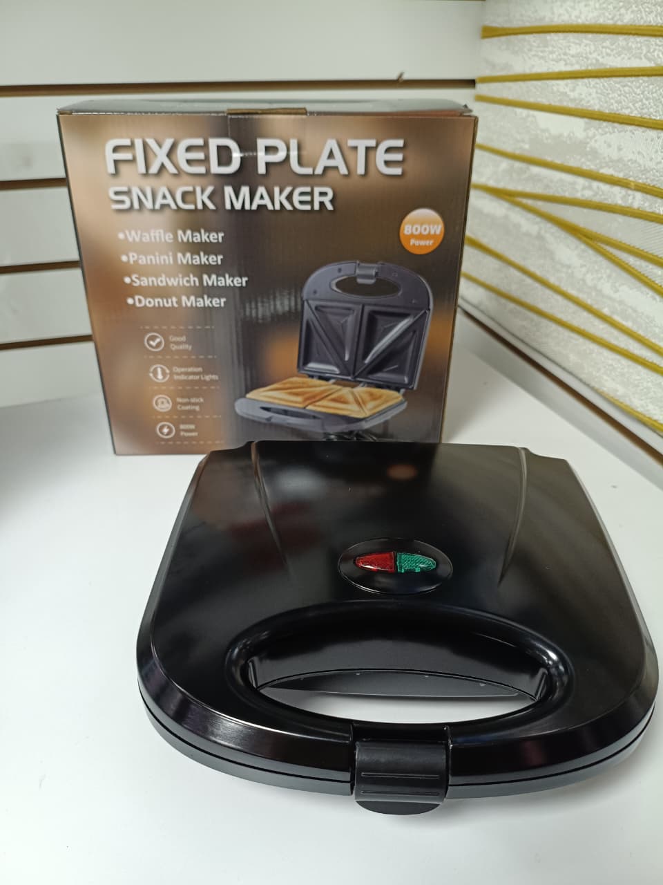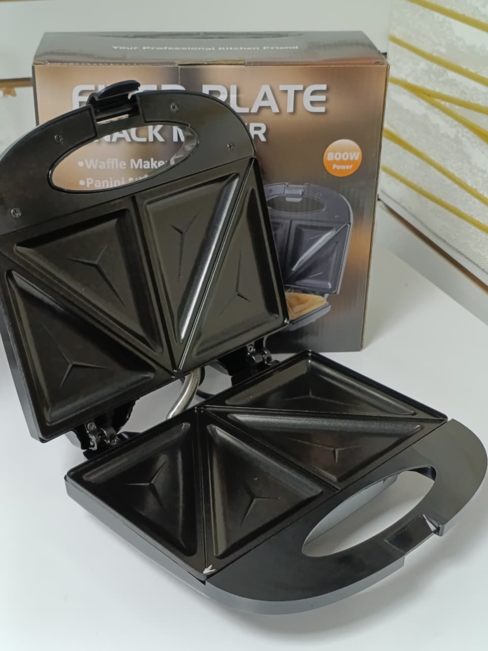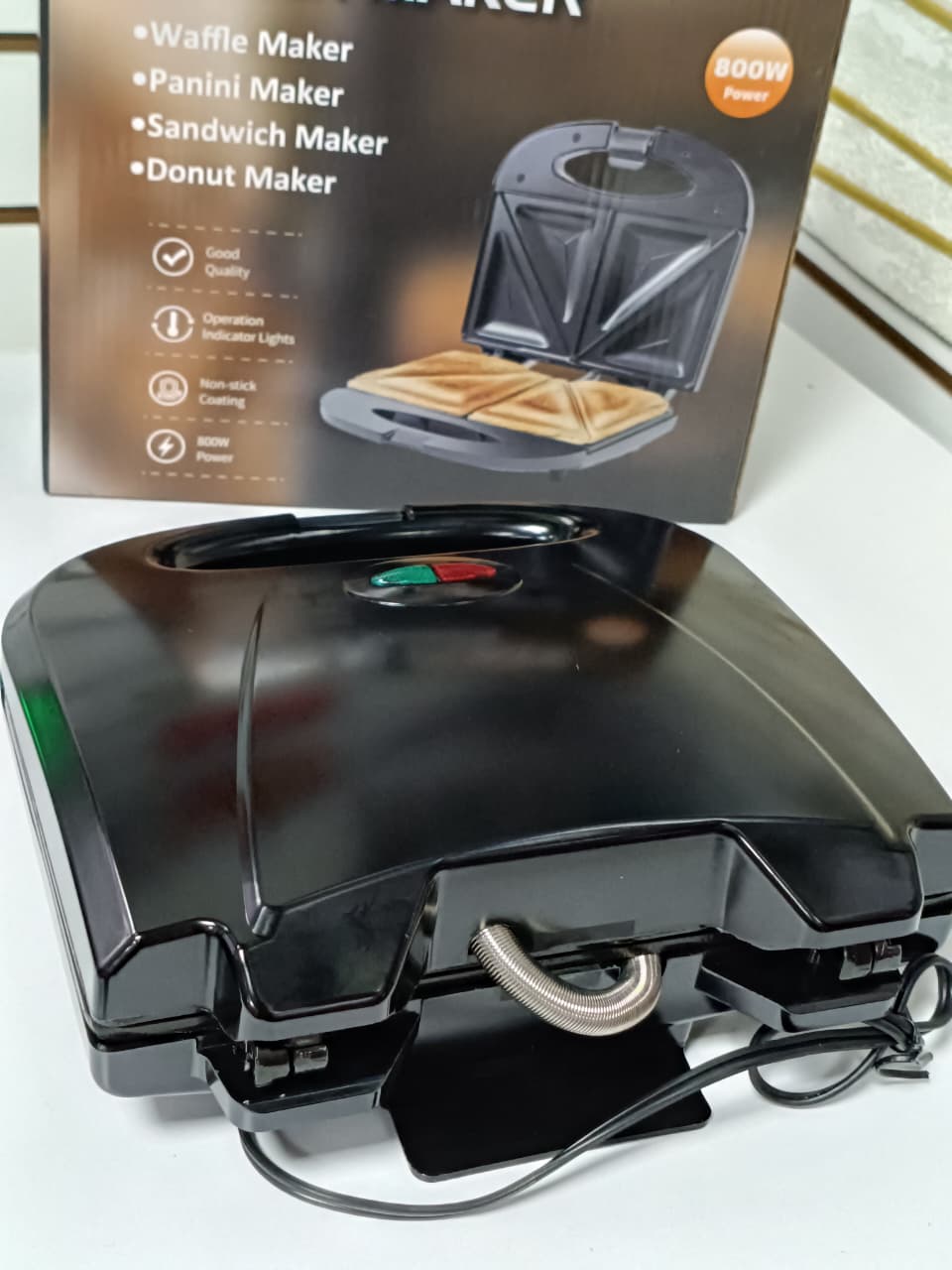 - Sandwichera eléctrica de 800W con placas antiadherentes.