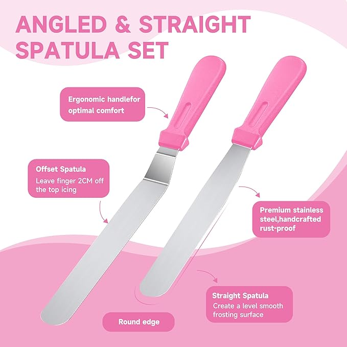 Kit de repostería de 137 piezas diseñado para decoración profesional de pasteles y postres. Incluye accesorios variados, plato giratorio y herramientas de acero inoxidable que facilitan diseños creativos. Es ideal tanto para principiantes como para reposteros avanzados que buscan resultados precisos.